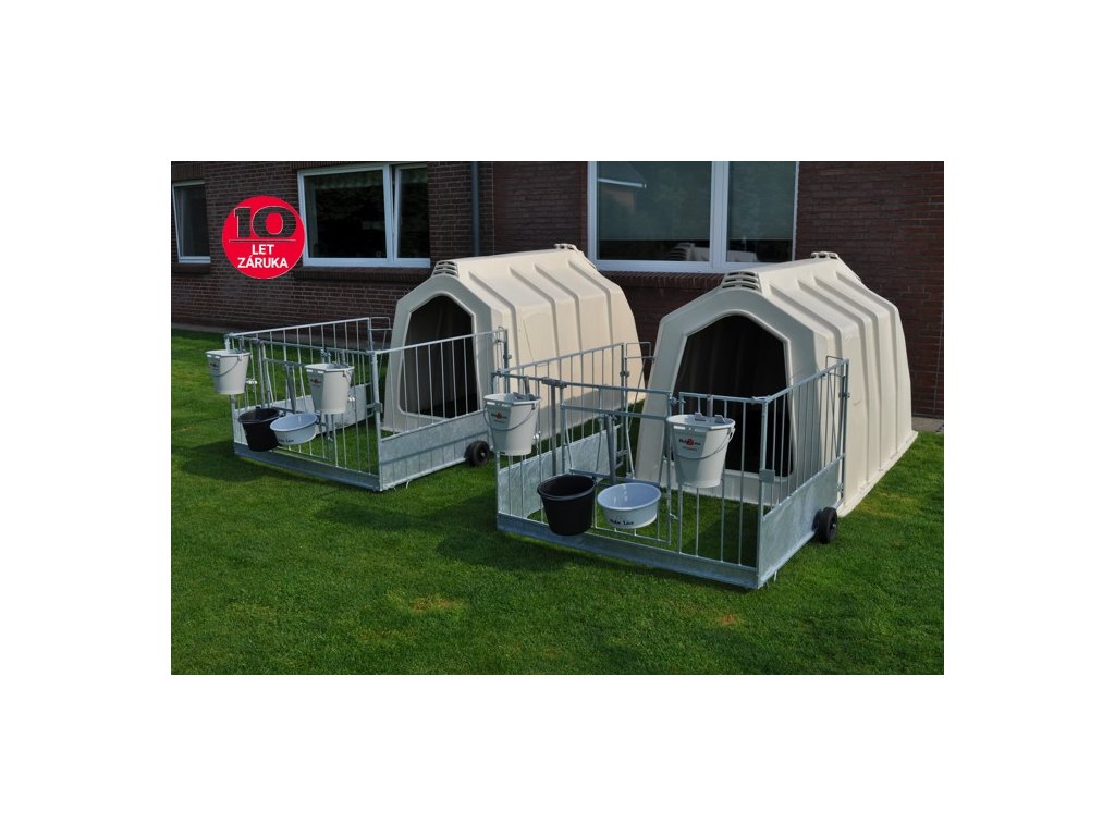 Bouda TWIN je navržena speciálně pro ustájení dvou telat během období mléčné výživy. Tento způsob ustájení respektuje přirozené sociální potřeby telat – umožňuje jim vzájemný kontakt, což vede k lepší adaptaci na pevnou stravu a snažšímu začlenění do větších skupin po odstavu. Podobně jako u individuálních bud je zde velká regulovaná ventilační klapka, kterou lze snadno boudy odvětrat a případně i jednoduše zastýlat.