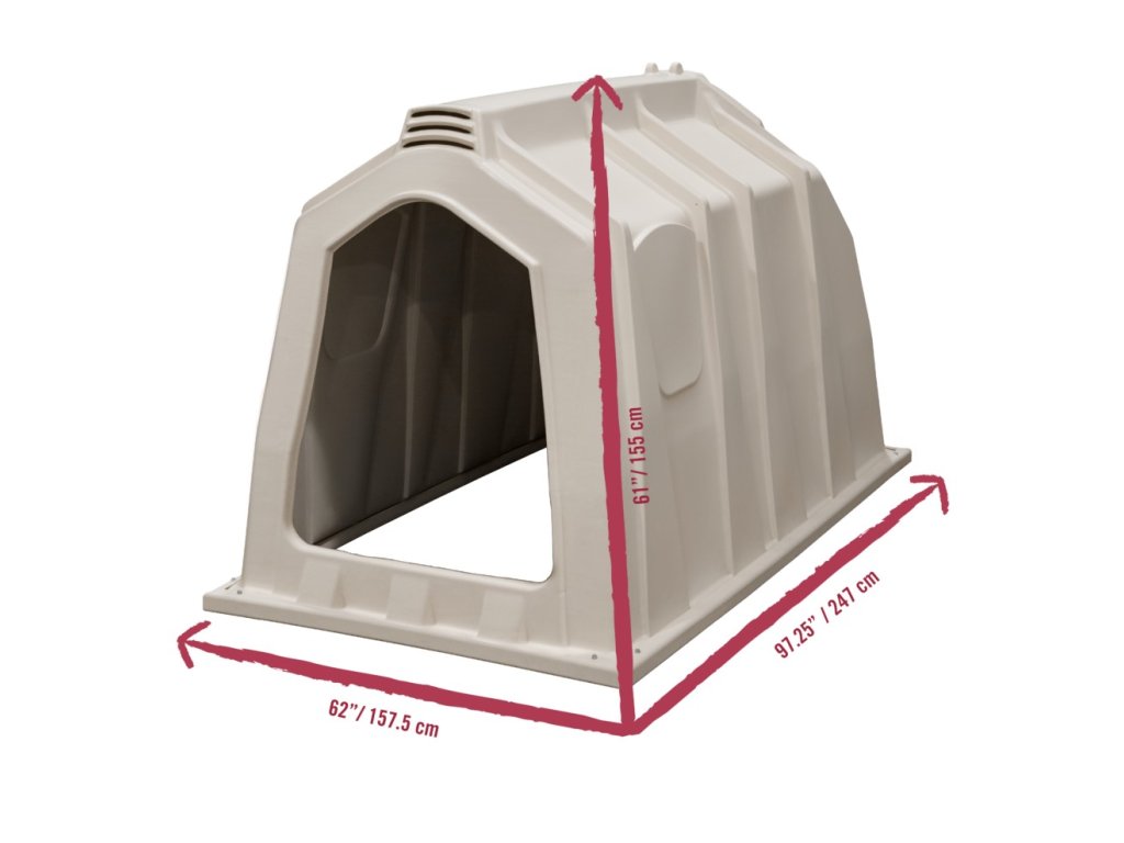 - Odolný a praktický materiál: UV stabilní plast zabraňuje blednutí a křehnutí materiálu na slunci a zároveň snižuje přehřívání vnitřního prostoru boudy během horkých dní. Hladký a omyvatelný povrch usnadňuje údržbu a dezinfekci, což je klíčové pro prevenci nemocí.
